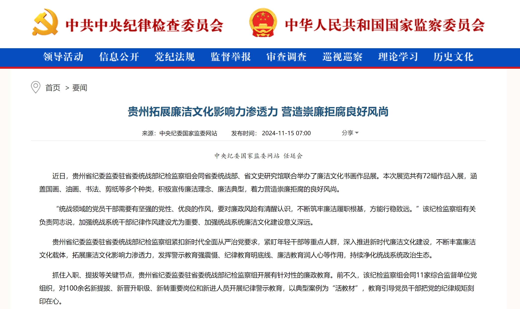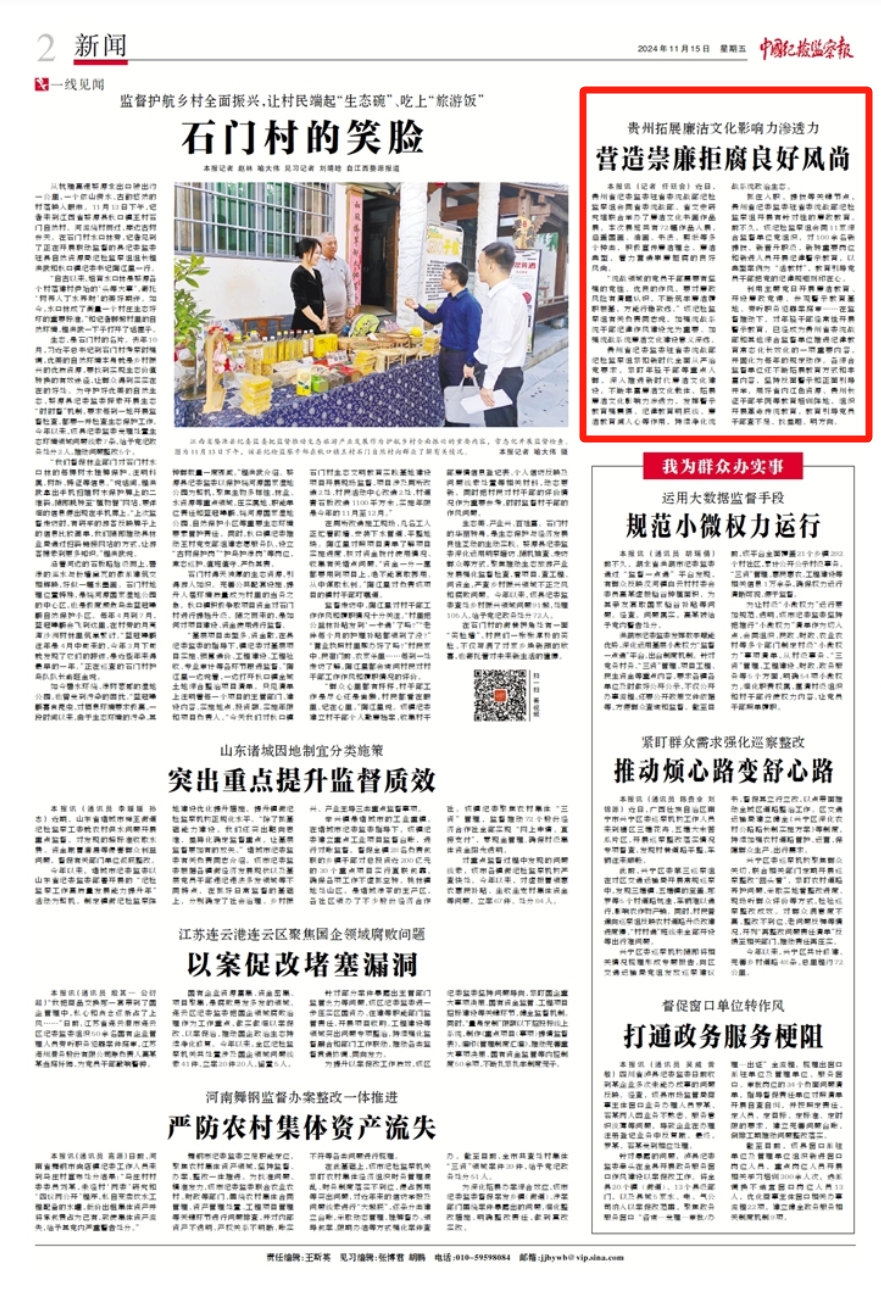 《中国纪检监察报》、中央纪委国家监委网站|贵州拓展廉洁文化影响力渗透力 营造崇廉拒腐良好风尚
