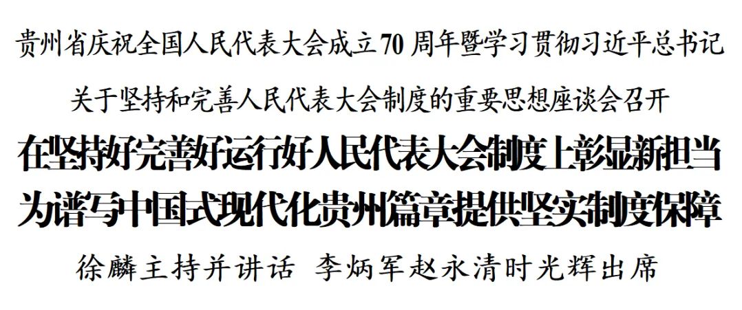 贵州省庆祝全国人民代表大会成立70周年暨学习贯彻习近平总书记关于坚持和完善人民代表大会制度的重要思想座谈会召开