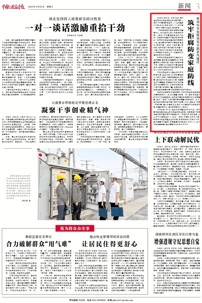 《中国纪检监察报》|贵州毕节加强领导干部家风建设 筑牢拒腐防变家庭防线