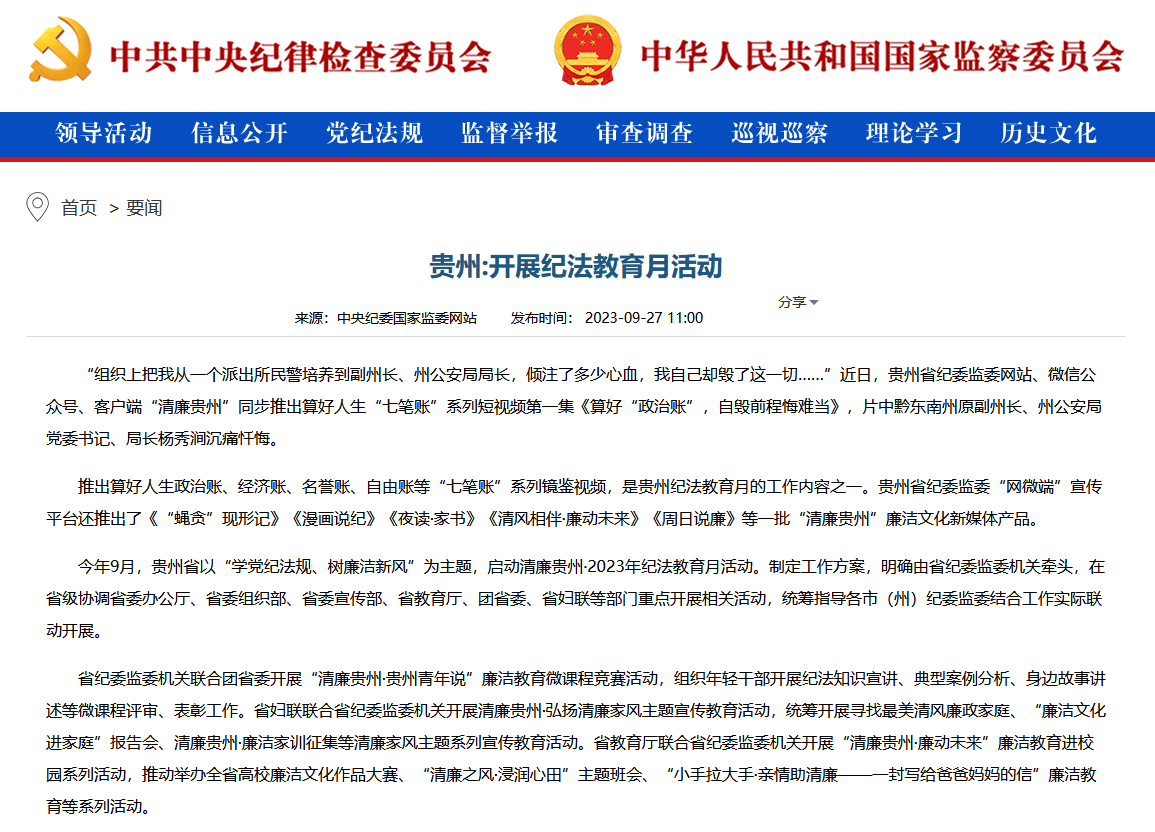 中央纪委国家监委网站丨贵州:开展纪法教育月活动