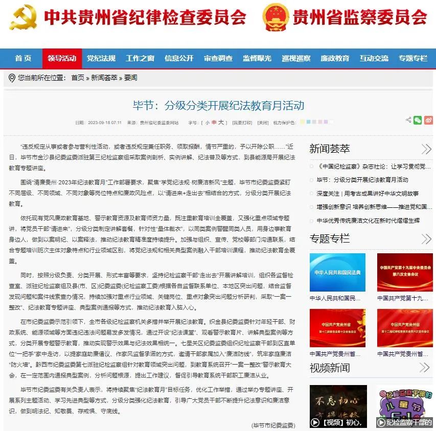 贵州省纪委监委网站丨毕节:分级分类开展纪法教育月活动