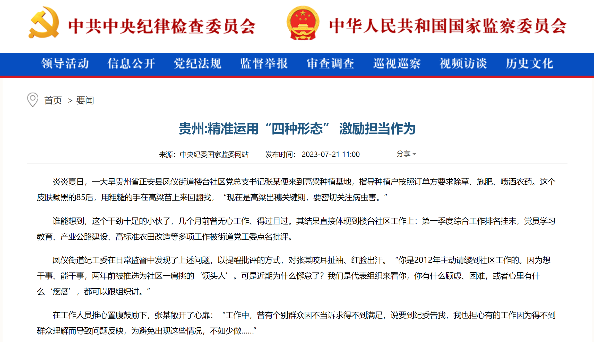 中央纪委国家监委网站 | 贵州:精准运用“四种形态” 激励担当作为